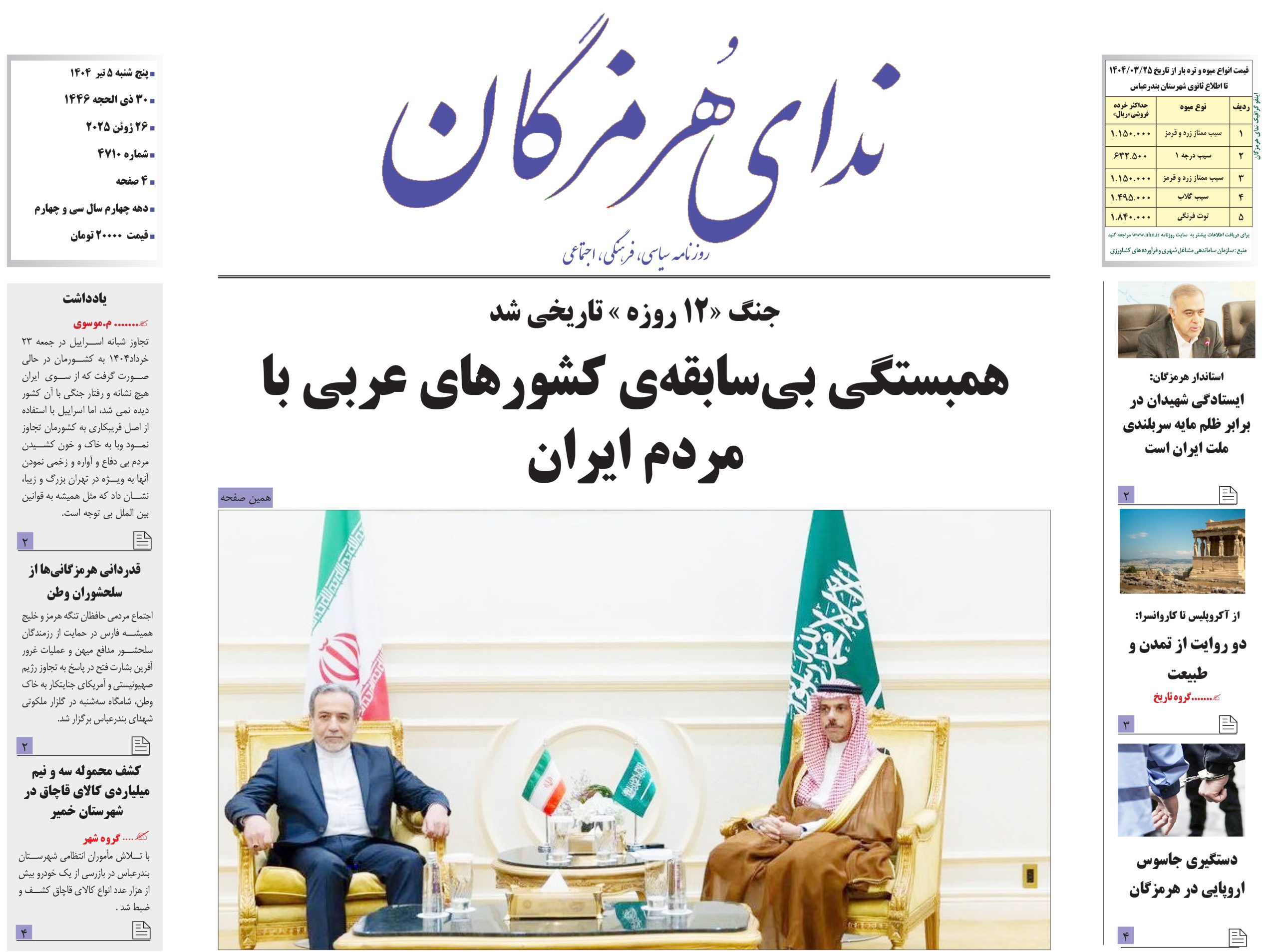 • روزنامه امروز ندای هرمزگان