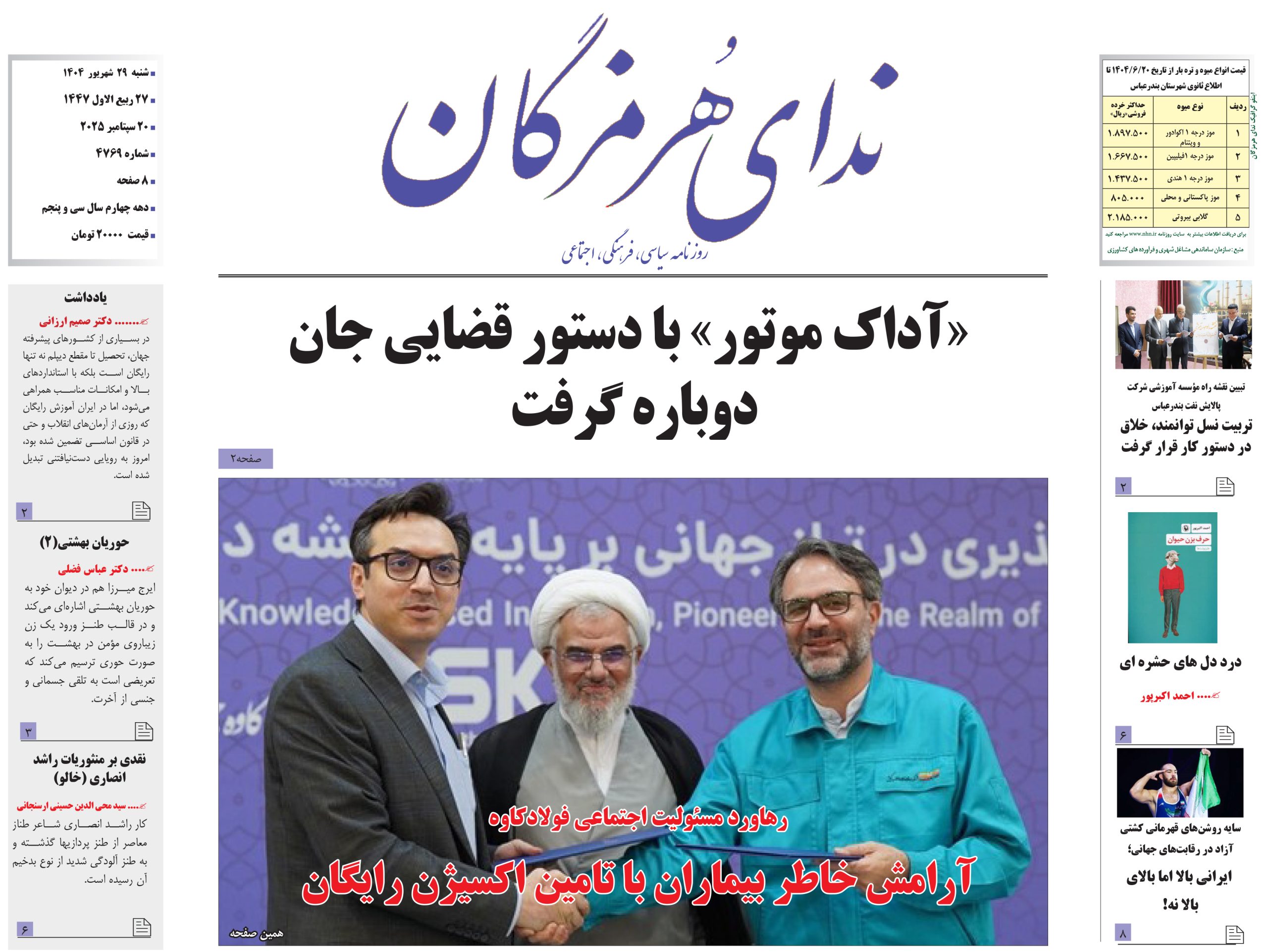 • روزنامه امروز ندای هرمزگان