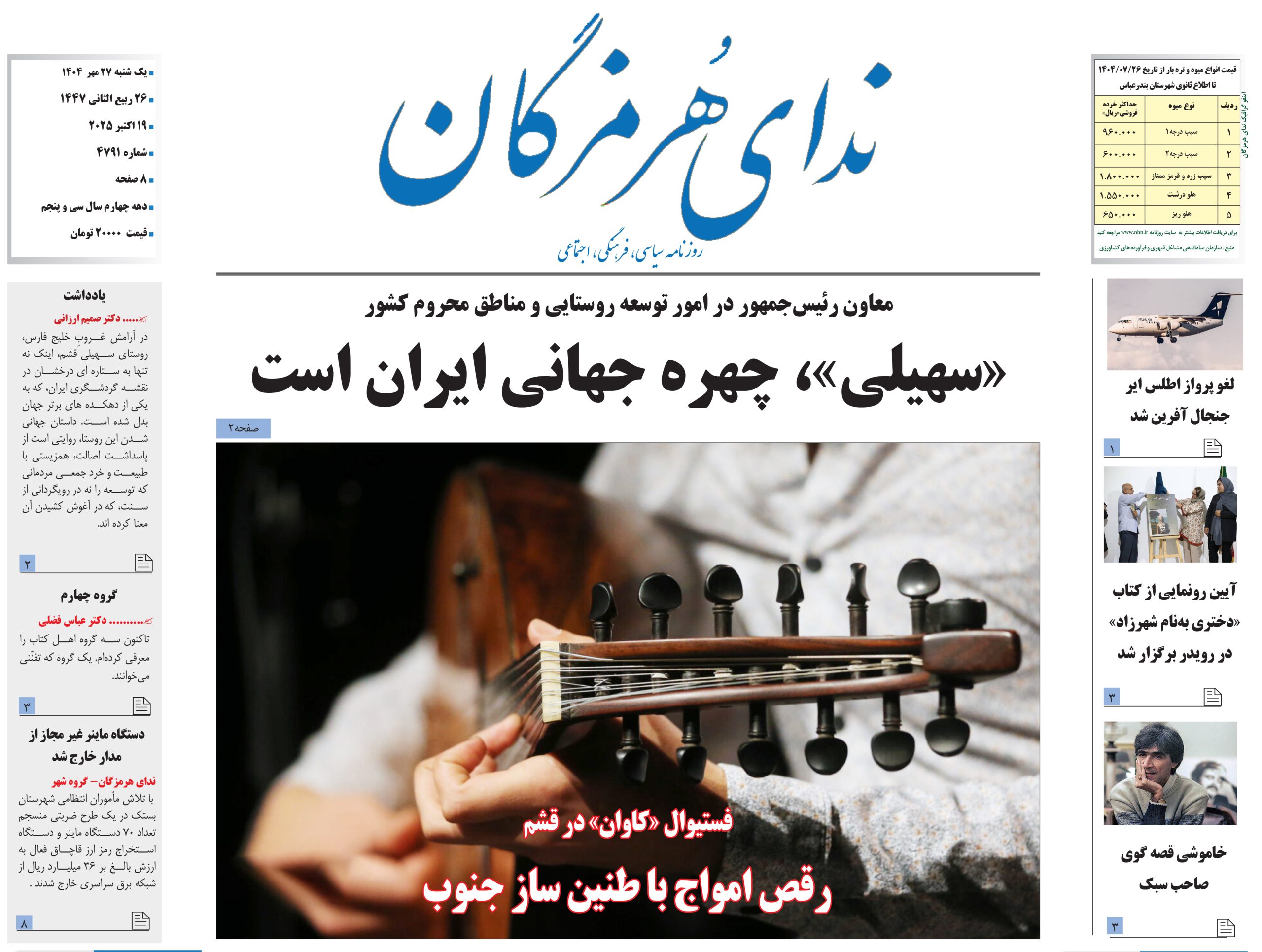 • روزنامه امروز ندای هرمزگان